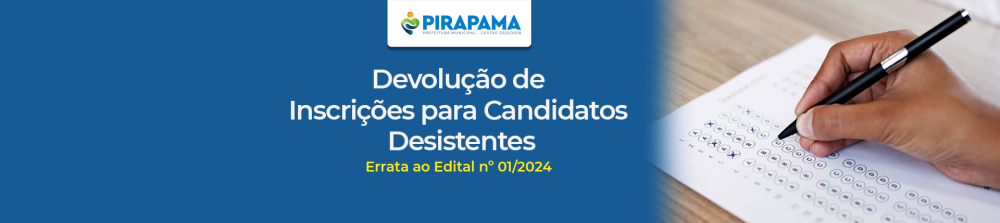 A Prefeitura Municipal de Santana de Pirapama/MG informa que os candidatos que desistirem da participação no concurso público regido pelo Edital nº 01/2024 poderão solicitar a devolução do valor pago pela inscrição. A devolução será feita via depósito bancário, conforme dados informados no formulário de solicitação.